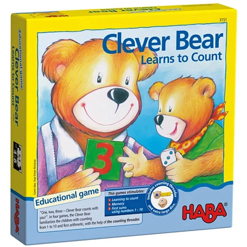 Društvena igra Bear Learns to Count je edukativna igra koja podstiče razvoj Vašeg deteta kada je u pitanju učenje brojeva do 10, koncetracija i memorija. Ova igra kroz 4 različite manje igre pruža priliku Vašem detetu da bezbrižno uđe u svet brojeva. U prvoj igri, dete će imati zadatak da upari različite kartice koje na različit način pokazuju isti broj (neka kartica će na sebi imati cifru, neka nacrtane prste...). Kroz tu igru, dete će ujedno vežbati i svoju memoriju. U narednim igrama, dete se može zanimati sa nekom vrstom "abakusa" koji sadrži samo jedan red sa drvenim perlicama. Na primer, od deteta će biti traženo da povuče onoliko perlica koliko je naznačeno na kartici.