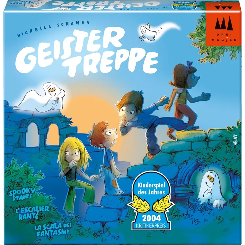 Ova društveno-edukativna igra memorije i opažanja namenjena je za 4 godine i starije. U njoj nam je cilj da prvi dovedemo figuricu do vrha stepenica, a koliko stepenika ćemo preći, reći će nam kockica. Međutim, ako na kockici padne simbol duha, igrač koji je bacio kockicu mora da prekrije jednu figuru šupljom figuricom duha, tako da se prvobitna figurica više ne vidi. Uskoro će sve figurice biti prekrivene duhovima. Sećamo li se koja je čija? Svaki sledeći put kad na kockici dobijemo duha moramo dvema figurama da zamenimo mesta, a možemo celu stvar dodatno otežati tako što ćemo zameniti boje igrača. Da li ste pomno pratili razvoj situacije na ukletim stepenicama? Dokažite da jeste i uz pomoć oštrog uma stignite prvi do vrha!