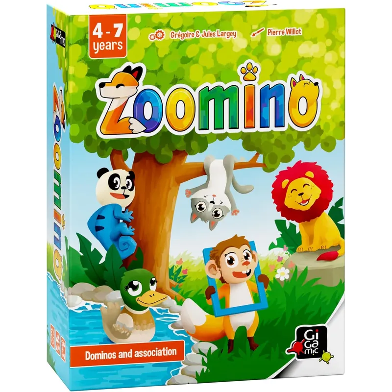 Zoomino je društveno-edukativna igra proizvođača Gigamic, idealna za ljubitelje slagalica i vizuelnog opažanja. Zasnovana na poznatom principu uklapanja domina, igra nudi jednostavna, ali izuzetno zabavna pravila koja pomažu razvoju logičkog razmišljanja. Igru čine jednobojne i dvobojne pravougaone kartice sa ilustracijama delova životinja na dužim stranama — glavama ili telima. Cilj je da pažljivim spajanjem kartica sastavite što više celovitih životinja.