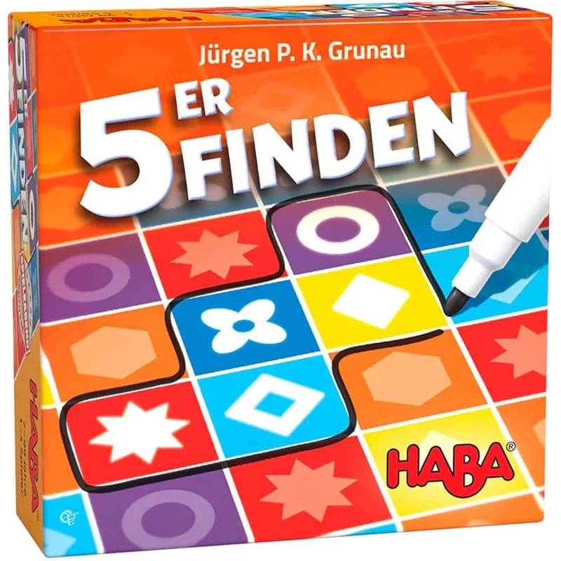 Društvena igra 5er Finden je takozvani roll-and-write tip igre. U ovoj igri, svaki igrač dobija tablu sa mrežom 10×10 od 6 kvadrata različitih boja. Postoji 12 poliomina koji su postavljeni u centar tabele; oni predstavljaju 12 različitih mogućih oblika koji se mogu napraviti sa 5 kvadrata. Oni se vrednuju od 1 do 4 boda. U svakoj od pet rundi u igri, neko baca 5 kockica. Ponovno bacanje se mora desiti ako ste dobili 3 ista simbola na kockicama. Kada dođe do valjanog bacanja, svi igrači počinju da ispituju svoju tablu za takozvane petice – to je poliomino oblik napravljen od tačno pet blokova koji tačno odgovara bacanju kocke. Kad god bilo koji igrač oseti da je gotov, uzima tajmer sa sredine stola, okreće ga i stavlja ispred svoje table. Tom igraču više nije dozvoljeno da pravi promene na svojoj tabli. Kada ponestane peska, taj igrač proziva kraj runde, a svi ostali moraju odmah prestati da pišu, a runda prelazi u fazu bodovanja. Prilikom bodovanja, ocenjujete vrednost svojih važećih pet oblika.